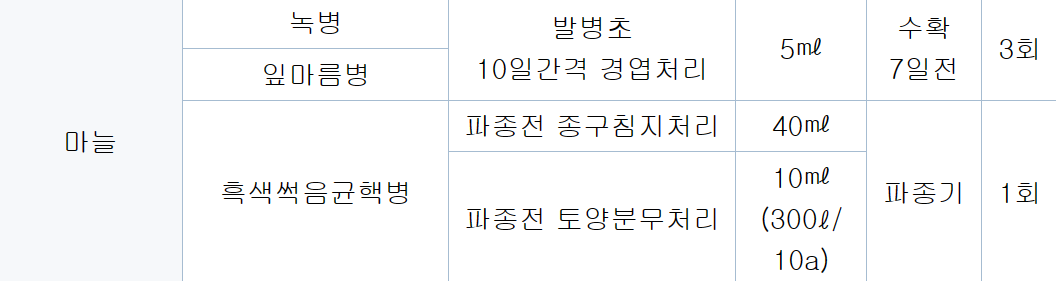 - 녹병 방제 농약: 마늘에 다양한 약제 등록