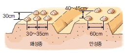 ·만성종 : 60㎝ 폭으로 2열, 주간 40~45㎝